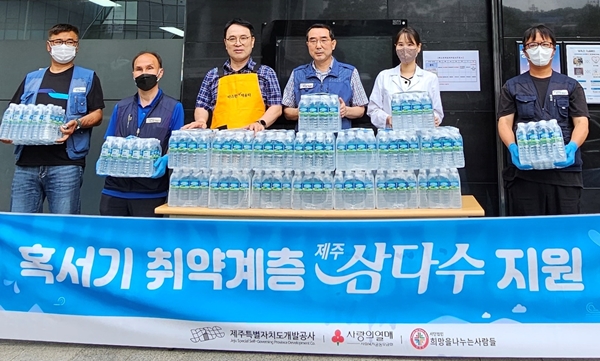 제주삼다수를 생산ㆍ판매하는 제주특별자치도개발공사(사장 백경훈)가 여름철 혹서기를 대비해 수도권 노숙인 시설과 도내 이동노동자에게 제주삼다수 1만6000여 병을 지원했다.