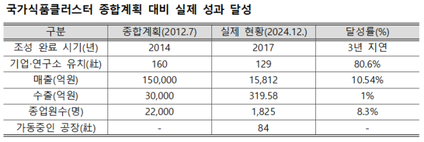 그러나, 지난해 기준 국가토토사이트클러스터 입주사들의 매출은 1조5812억원으로 목표의 10.5% 수준에 머물렀으며, 수출액은 319억원으로 목표치 3조원의 1%에 불과했다. 고용 인원은 1825명으로 목표의 8.3% 수준이었다. 유치 기업ㆍ연구소는 계획(160개)에 미달한 129개사(2024년 기준), 산업단지 분양률은 76%로 미달 상태를 보였다.